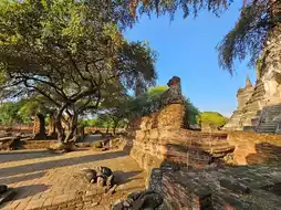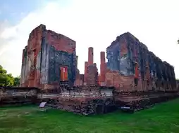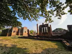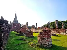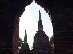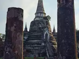 Located to the north of Wihan Phra Mongkhon Bophit, it is an important temple of Ayutthaya, which is a temple built in the Grand Palace. It is comparable to Wat Phra Sri Rattana Satsadaram or Wat Phra Kaew today. It is where the royal remains of almost every king of the Ayutthaya period are kept. The three pagodas of Wat Phra Si Sanphet, the first on the east side, contains the royal remains of King Borommatrailokanat, the second is the middle, contains the royal remains of King Borommarachathirat III, and the third on the west side, contains the royal remains of King Ramathibodi II. All three pagodas are Sri Lankan-style pagodas.