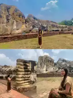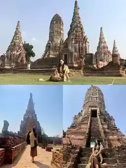 We recommend a Thai conservation trip. Wear Thai clothes and take pictures at an old temple in the style of Ao Jao. We started by renting a Thai dress in front of Wat Chaiwatthanaram. There are dozens of shops renting clothes. Then walk to take pictures at Wat Chaiwatthanaram. The entrance fee is 10 baht, foreigners 50 baht.
