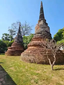 Wat Phutthaisawan, a royal temple in Phra Nakhon Si Ayutthaya, is a must-visit destination when exploring Ayutthaya. This temple was featured in the popular drama 'Buppesannivas,' making it a significant spot for fans to follow in the footsteps of the story. The temple boasts a multi-tiered white tower, golden Buddha statues arranged in all four directions, and ancient ruins and an old chapel that offer a glimpse into the past. The serene atmosphere feels like stepping back in time. Inside the ruins of the chapel, there is a reclining Buddha that exudes an enchanting aura of antiquity. Additionally, the temple is located by the Chao Phraya River, providing a pleasant and picturesque setting.