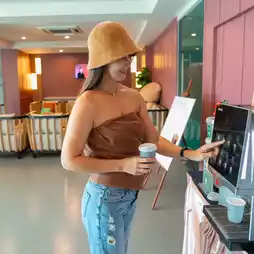 May stayed in the Standard room and loved it right away. The bright and cheerful mood and loft-style decor are truly captivating. There's even a cute teddy bear to welcome you! The room is clean, spacious, and comes with a balcony. It's fully equipped with amenities like a Smart TV, refrigerator, wooden clothes rack, and tea/coffee.