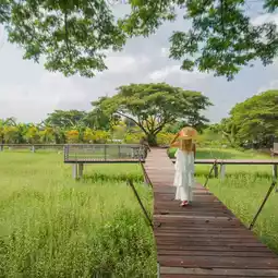 #Travel to save the world In hot weather, relax with a nice atmosphere accommodation close to nature. Stop by Wat Chaiwatthanaram and eat cool ice cream. The Cavalli Casa Resort, Conference Hotel and Resort in Ayutthaya is a modern and quiet accommodation with a swimming pool with a beautiful view of the train running. There is also a cafe, restaurant, cake painting activities, a green area, a long bridge, a large tree arch to sit and relax, and a small canal that is very shady. There are 5 room types in total, beautifully decorated, comfortable to the eye, natural views, a bathtub to soak in, divided into very good proportions, and fully equipped facilities. For those who want to visit ancient sites, you can stop by Wat Chaiwatthanaram. #Good atmosphere accommodation #Ayutthaya #travel #ayutthaya