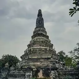 As for the Standing Buddha Temple, it has collapsed over time. In the temple, there is also a large bell-shaped pagoda, approximately 40 meters high, which is a pagoda from the early Ayutthaya period. Influenced by Sukhothai art and 17 carved stone sema stones around the chapel. One in front of the chapel was shot by Phraya Ram's Narai San Suan cannonball, and the marks are still visible today.