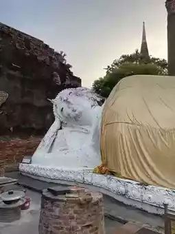 Wrapping a blanket over the sleeping Buddha in Ayutthaya