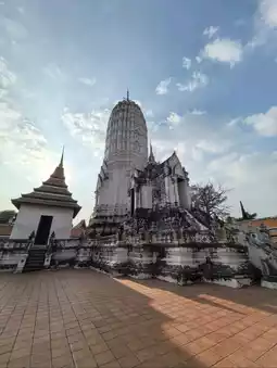 - Phra Prang Yai: The important structure of the temple is a tall prang that reflects Khmer art. It has a cement base decorated with Thai patterns.