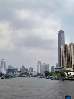 The best views are when you head in the direction towards Sukhumvit—you’ll pass by big hotels, old temples, and local houses right on the water. It’s a cool mix of modern and traditional Bangkok. If you sit outside on the deck, you get the breeze and a great view of everything along the river.
