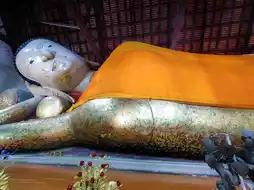 🎈The reclining Buddha chapel houses the large reclining Buddha, over 600 years old, a stucco Buddha statue from the early Ayutthaya period, which is similar to the Sukhothai style. It is 21 meters long. It is believed that if you come to pay homage, you will receive kindness and popularity. And dispel bad things