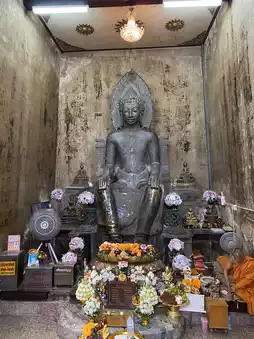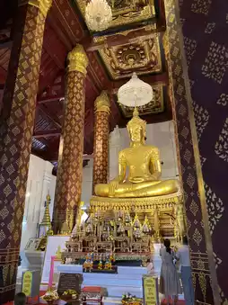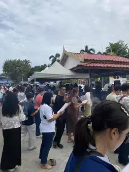 I had the opportunity to worship at Wat Na Phra Meru with my friends. We arrived at almost noon that day. The weather was hot but the atmosphere was still shady. There were a lot of people. You could say that the temple was full of faith.