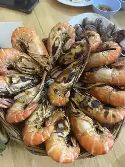🍤 As it starts to get late, we don’t hesitate to have a big meal at Phongphan Seafood, a famous restaurant in Ayutthaya. The large river prawns are juicy and have bouncy meat, grilled with a fragrant aroma, served with a spicy seafood sauce. Eat it with hot rice, it’s the best part of the day!