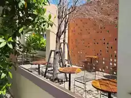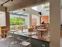 A famous coffee shop in the old city of Ayutthaya, near Wat Mahathat, is both a cafe and a coffee roasting house. The shop is decorated in a minimalist Korean style cafe, emphasizing the color tones of brick, yellow, and white, simple and pleasing to the eye. The shop has an outdoor area and an air-conditioned room inside to choose from. The interior has a high ceiling, giving a sense of openness. The atmosphere in the shop looks bright and not gloomy. The light reaches every spot, making every corner beautiful to take pictures. There are a lot of seats, arranging the outdoor and indoor areas to match perfectly.