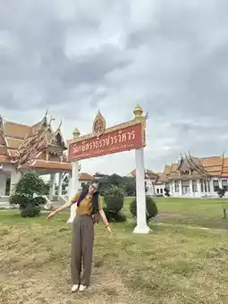 It's an ancient temple with beautiful art. You can also pray for blessings inside the temple, offering even more auspiciousness. The temple is spacious and has parking, making it convenient for those visiting to make merit and pay respects. The temple's atmosphere is shady and peaceful, as it's located on the banks of the Chao Phraya River. There's also a fish feeding area.