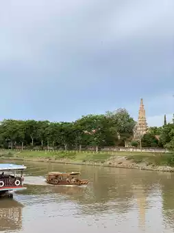 When asked about a restaurant with a great atmosphere and a stunning sunset view in Ayutthaya...