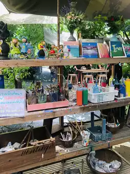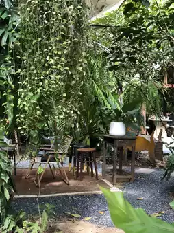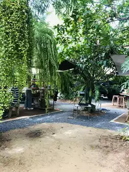 A garden cafe with a painting workshop. You can choose to buy a canvas in the size you want to paint or there are coasters at a very affordable price. Choose the size you want, pay, and then go get the color you want. The shop provides aprons and many chill corners to sit and chat with friends and paint all day. Drinks are not too expensive but not amazing. It's a place to sit and paint for fun. The shop has a small parking lot. It gets crowded on Saturdays and Sundays, but there are plenty of seats. There is a garden corner or you can bring a mat to lay down on the lawn under the shade of the trees. #Ayutthaya #AyutthayaCafe #WorkshopLocation #GetDiscountsNotRelyingOnLuck