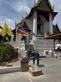 🌼 Pay respects to the Buddha in the small chapel and apply gold leaf to the Buddha image.