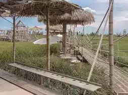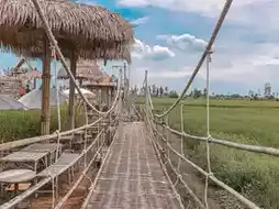 The highlight here is the long bamboo bridge πΏ connecting to various resting pavilions scattered throughout the rice fields. Some corners have wooden pavilions π and others have tables under the shade of trees, so you can choose your preferred seating. There's also a bamboo observation tower π― where you can climb up to enjoy the panoramic rice fields, almost like a painting.