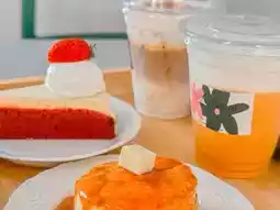The menu offers a wide selection of beverages and bakery items ☕🍰, including coffee, green tea, cocoa, and adorable homemade cakes, all served in a photo-worthy social media-worthy style. ✨ Perfect for a cup of coffee, some light work, or a relaxing weekend getaway.