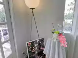 The exterior is a clean, white house 🤍, contrasting with the chic, simple sign. The interior emphasizes a minimalist theme, interspersed with hanging flowers and flower arrangements 🌼, creating a refreshing atmosphere. Every corner is photogenic 📸, like a small art studio.