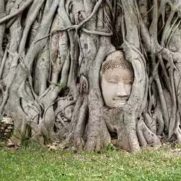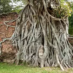 The "Buddha's Head in Tree Roots" is located in the grounds of Wat Mahathat.