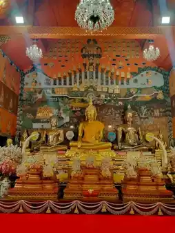Feeling: Upon entering the viharn, one is immediately struck by the sacredness and grandeur of the Buddha image. The illuminated golden Buddha images enshrined throughout the viharn inspire deep devotion and awe in visitors.