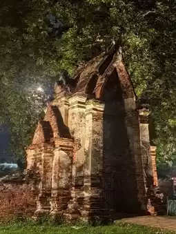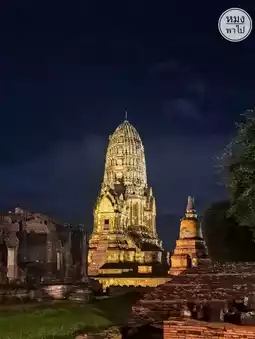 Wat Ratchaburana at night is both breathtakingly beautiful and serene. The lights illuminating the main prang highlight the exquisite architectural details of the Ayutthaya period. The prang's shadows cast upon the surrounding ground are like shadows of the past, telling stories of the ancient city for us to imagine.
