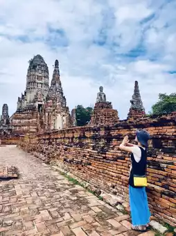 Many visitors choose to rent traditional Thai attire for photos here. Dressed in elegant Thai costumes, with the golden sunset casting its glow on the ancient ruins, one feels as if they've been transported back to the Ayutthaya era.