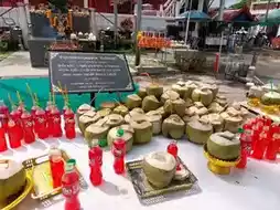 Wat Kruttharam is an ancient temple located outside the main island of Ayutthaya. It is a public temple with an inscription in the ordination hall stating that it was established during the reign of King Ekkathat, also known as King Suriyamarin. The temple is renowned for its sacred statue of Luang Por Krut, where visitors come to pray for blessings in trade, business, investments, fortune, career advancement, and growth. A unique tradition here involves offering red coconut water as part of the prayer ritual.