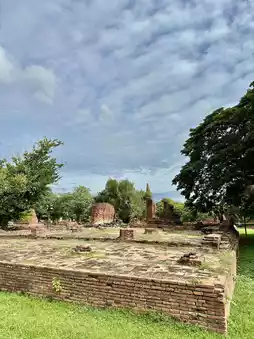 Once standing proudly to the east of the Main Pagoda (Prang), the Royal Sermon Hall—or Royal Vihara—was a sacred space where kings and monks once gathered in devotion. Built of solid brick and mortar, its graceful design reflected the architectural harmony of the Ayutthaya period, aligned perfectly with the Pagoda’s axis and mirroring the Ordination Hall (Ubosot) to the west.