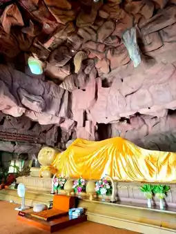 The second area is a forest temple open to the public for meditation and sightseeing. This section houses a large reclining Buddha image housed in a replica cave. There's also a replica of Phra Thinang Sanphet Prasat, modeled after the ancient royal palace from the Ayutthaya period.