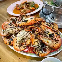 End the day with a full dinner!!! I chose to go to the Central Market of Ayutthaya, which has many restaurants in this area. Since there were many restaurants, I pretended to walk around once. 55555 (Every restaurant is similar). But from searching for information, many people recommended this restaurant, so I decided to eat at this restaurant. (It was worth walking around!!) I can say in one word that it was delicious!!! Every menu was delicious. I had to order another 1 kg of grilled shrimp after I was almost done eating. For those who don't want to peel the shrimp, the restaurant offers a peeling service. 🦐