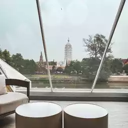 It is a very beautiful hotel. It is one of the top hotels here. The hotel has a cafe and a restaurant. This time, I chose to sit on the rooftop. When I looked out, I could see the river and the view of the prang of Wat Phutthaisawan, which was very beautiful. (Those who like taking pictures must not miss it📷)