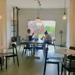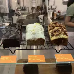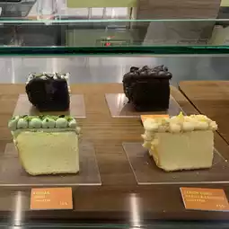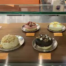 The dessert in the shop is cake. The shop is decorated in a simple modern style. From above, you can clearly see the view of Wat Rat Burana. Parking is available on the side of the road on the shop side and on the opposite side.
