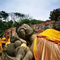 Wat Phutthaisawan at this time, no one would not know because the movie and TV series Buppe Sannivas made Wat Phutthaisawan lively and lively, returning to a beautiful atmosphere once again. The highlight of Wat Phutthaisawan is the prang, which was built since the early Ayutthaya period. It is outstandingly beautiful and unique to this temple. However, there are still many artefacts and antiques inside the temple, especially inside the chedi, where there is a replica of the Buddha's footprint and a pagoda containing the Buddha's relics. In addition, there are many ancient Buddha images around the prang. If anyone comes to visit Ayutthaya and does not come to Wat Phutthaisawan, in my personal opinion, they have not truly arrived in Phra Nakhon Si Ayutthaya. #Mong takes you to