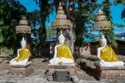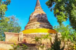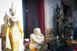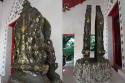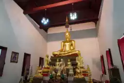 Wat Mae Nang Pluem, originally called by locals as "Wat Nang Pluem" or "Wat Somphluem", is assumed to have been built around 1920. The area where the temple is located was once the site of a Burmese camp that surrounded Ayutthaya several times. There is still a mound of the camp, which locals call "Kok Burma". The style of art, from the style of the main pagoda of the temple, is assumed to have been built at the same time as Wat Thammarat and Wat Mahaeyng Khana, that is, it is a bell-shaped pagoda in the Sri Lankan style, standing on a lion-surrounded base, and decorated with stucco patterns on the gable of the chapel. Inside the temple, there is a bell-shaped pagoda built as the main pagoda, built on a high base. The lower base is surrounded by stucco lions, which is a lotus base decorated with lotus buds. This lotus pattern is inherited from Khmer-Lopburi art. The difference is that the lotus bud base is quite high, leaving a lot of space at the bottom of the wood, and the lotus buds at the bottom are small and have 2 lines, which is a style that evolved from the early Ayutthaya period. It is estimated to be around the end of the 21st Buddhist century. As for the chapel, there is evidence that it was renovated in the early Rattanakosin period. Judging from the stucco patterns on the front gable, it is a pattern influenced by Chinese art. It was popular around the reign of King Rama III. At this temple, there is still a carved wooden pediment by Rattanakosin craftsmen on the back pediment. It is currently kept at the Chao Sam Phraya National Museum. Inside the temple, there is Luang Pho Khao, "Phra Phutthanimit Mongkhon Si Rattana Trai", a sacred Buddha image. People often stop by to pay homage and ask for blessings and make vows. Everyone usually gets their wish fulfilled. Each person comes to make an offering of boiled eggs and garlands. The pagoda, the temple, and Luang Pho Khao were renovated by the Fine Arts Department in 2000, so they look outstanding. #Ayutthaya is worth visiting #Visit Ayutthaya temples #Worship the Buddha at nine temples #Old Ayutthaya temples