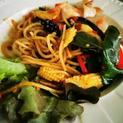 Kru Jam Balcony Restaurant is about 2 kilometers past Wat Phutthaisawan. The food tastes delicious. The owner is very kind and friendly. I am very impressed. The food tastes good. I recommend you to come and try it.