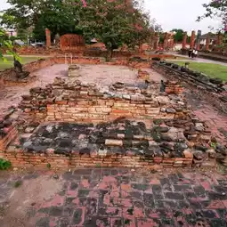 Wat Mahathat is one of the earliest Khmer pagodas built in Ayutthaya. There are 198 pagodas in total. The main pagoda has collapsed, and only the supporting stone pillars remain in the hall.