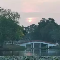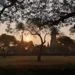 Cycling in the morning to watch the sunrise at Bueng Phra Ram in the Ayutthaya Historical Park is very good. The air is cool and comfortable. There are very few cars. Cycling in the morning is fun. There are many people who come to exercise. Inside Bueng Phra Ram Park, there are old temples, old pagodas, and bridges over the water. You can park your bike and walk around. There is a place to sit and enjoy the view. The walkways and bike paths are very good. #TravelThailand #TravelAyutthaya #Cycling