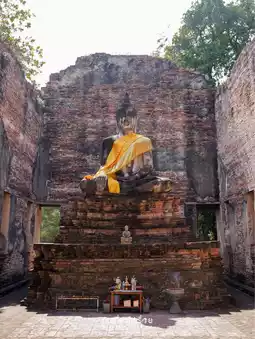 The highlight of this temple is the large Buddha statue hidden inside, which looks like an old church. The walls are made of red-orange bricks, as if it has been through many eras.