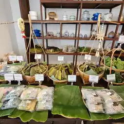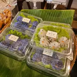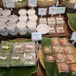 Baan Khao Nom Ayutthaya sells Thai desserts from the kitchens of family members and from the kitchens of locals who are skilled at making Thai desserts.