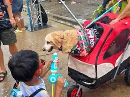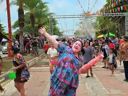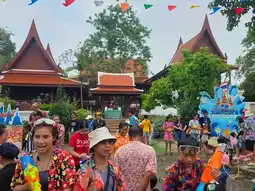 It is a front yard of the Tourism Authority of Thailand, Phra Nakhon Si Ayutthaya Office. There are many food and drink shops, water gun shops, equipment, almost no need to bring anything, including a place to bathe the Buddha image before the sand pagoda, including the highlight of having about 5 elephants dancing and playing in the water with tourists. I like this a lot. 🔫