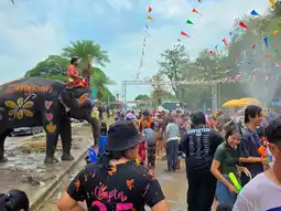 #Songkran attractions 🐘 Playing water with elephants, Songkran, Ayutthaya, very wet 💦 The people are lovely, lots of water, free refills