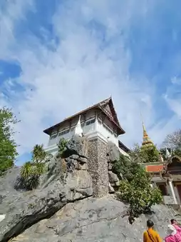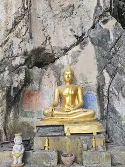 A famous temple in Saraburi with a beautiful ordination hall. The area is spacious, with a staircase leading up to a small cave with a reclining Buddha at the top, and there is also an old small chapel.