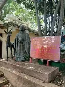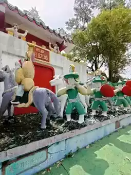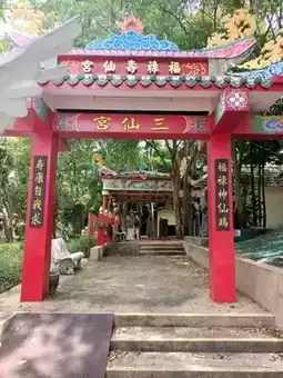 A large statue of Guan Yin sits atop a pond at Wang Sam Sien on Khao Phra Tamnak. Surrounded by shady trees, the shrine also boasts beautiful architecture, including: