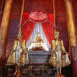 🏡Inside the temple, there is a large teak house with Burmese architecture. This wooden house serves as the ordination hall, vihara, and monk's residence all in one. The roof of the building has nine tiers.