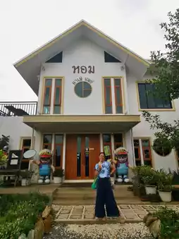🥤 Hom Cafe is a cute coffee shop in Phrae Province. From many people's perspective, it is more than just a coffee shop. Here, there are a variety of beverages, homemade cakes that are freshly made every day, and a variety of food menus to choose from, whether it's spicy Thai food, steak, or even snacks like French fries and cheese balls. It's perfect for chilling out with friends, family, or even working. The shop is decorated in a warm and friendly style. There are many beautiful photo spots, and most importantly, there is a playground for children. This makes Hom Cafe another interesting destination for tourists visiting Phrae Province.