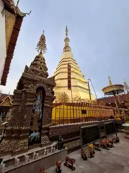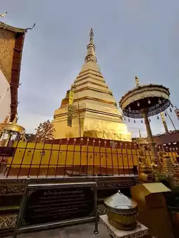 The name "Phra That Cho Hae" refers to a stupa that enshrines the Buddha's left elbow relic and hair relic, adorned with fine silk cloth as an offering.