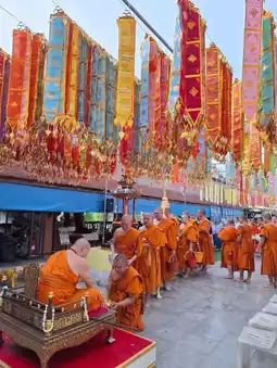 It is believed that offering three-colored silk cloths to the temple will bring vitality, protection from enemies, and prosperity in life and career.