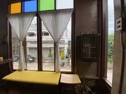 But wait, this shop is not just a cafe, you know! They also have a “hostel” with the same name, Phraeris Boutique Hostel, on top of the shop. It’s perfect for backpackers like us. The rooms are chic, with both single and dormitory rooms. The prices are very cute, starting at less than a thousand baht, but the view is worth millions because you can see the rooftops of Phrae in 360 degrees.