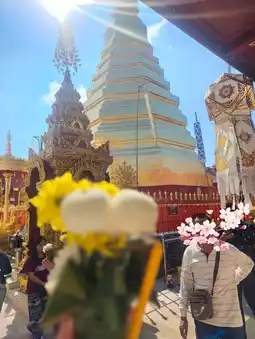 > 💡 Highlights: The golden chedi stands majestically on a hill. Walk around it and pray for good luck. Try casting lots for fortune sticks.