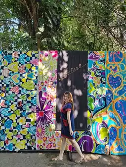 ☕ A cozy cafe decorated with batik fabrics and colored canvas.