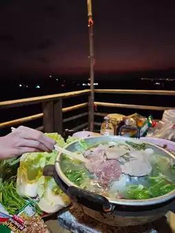 Finish your dinner at Cha U Moo Krata, Phra That Pu Chae branch. The view is worth a million baht. The marinated pork is tender and the sauce is incredibly spicy. Split the bill, it comes to 249 baht per person!