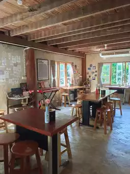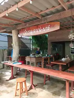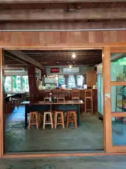 It's like we've lost our way and found ourselves at Ping Ruea Cafe, a charming cafe hidden in the Hua Khuang community in Mueang District, Phrae Province. Originally a two-story wooden house, the ground floor has been transformed into a meeting place for socializing, exhibiting handicrafts, drawing, painting, and bottle painting. They also serve tea, coffee, and other beverages. Surrounding the house is a garden with trees, creating a wonderful atmosphere. They also serve snacks. The most delicious and classic dish is the Nam Ngiao Nam Moo (pork and pork soup). If you're in Phrae and haven't tried Nam Ngiao Nam Sai (clear soup), a secret recipe from Phrae, you've truly missed out.